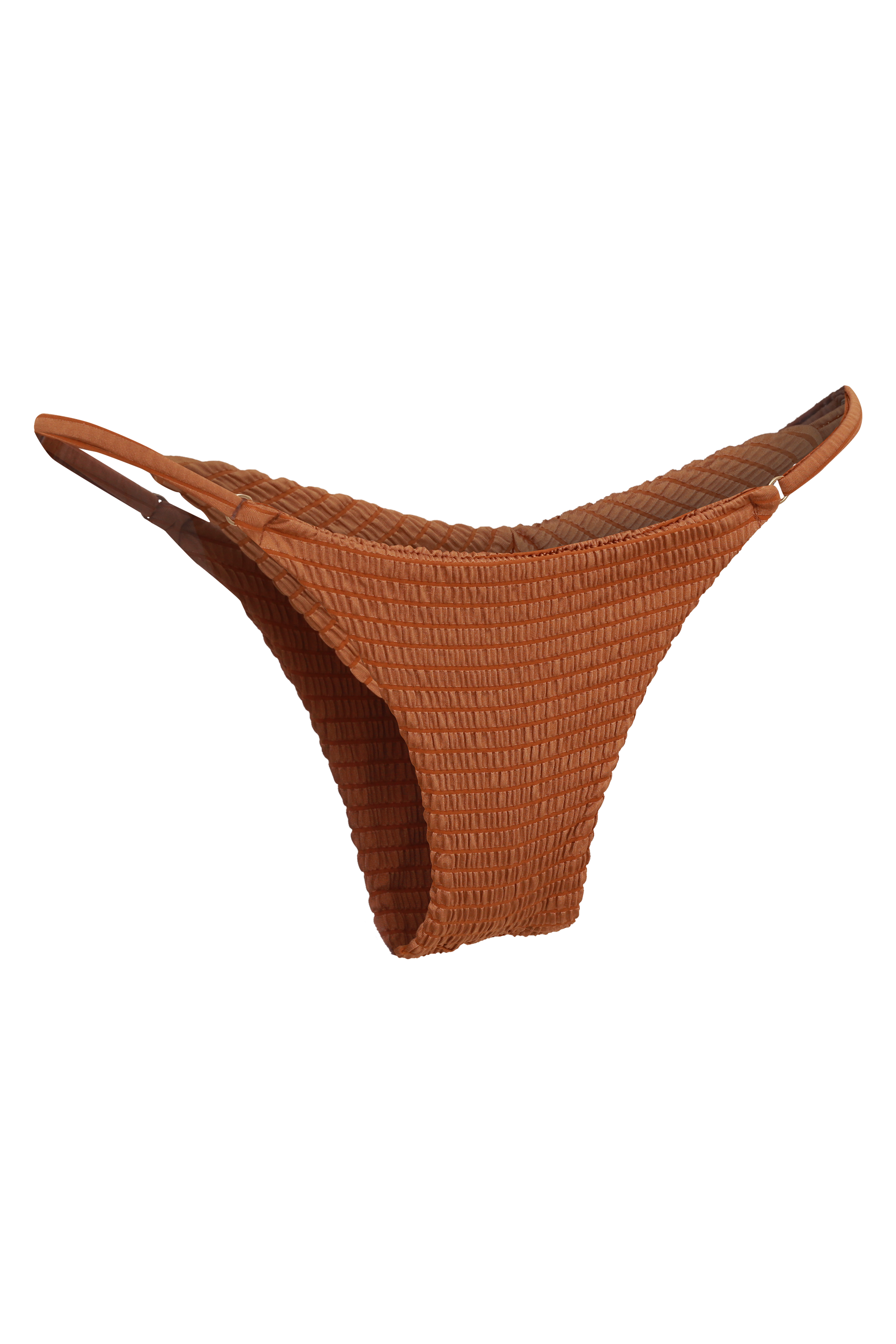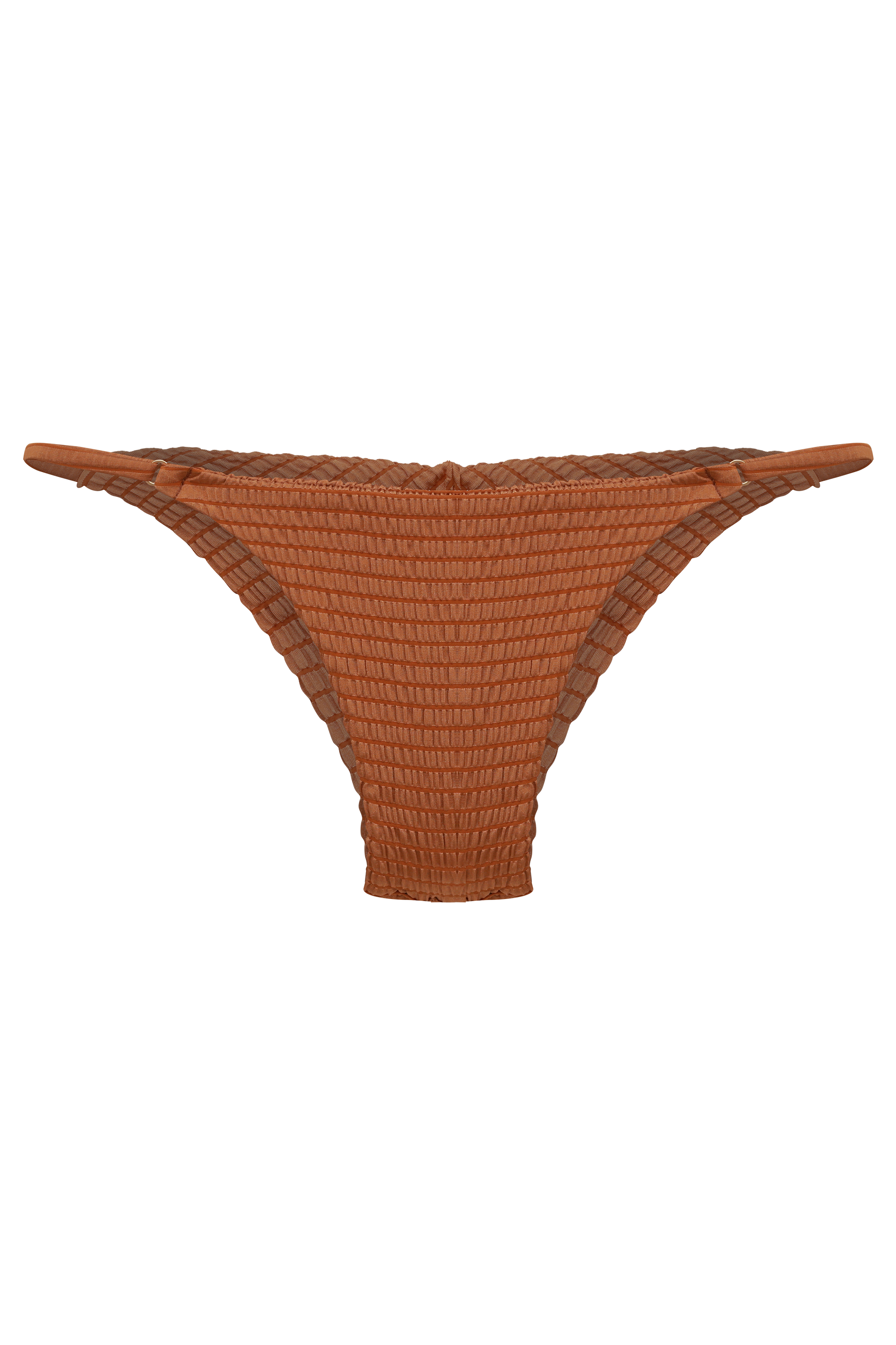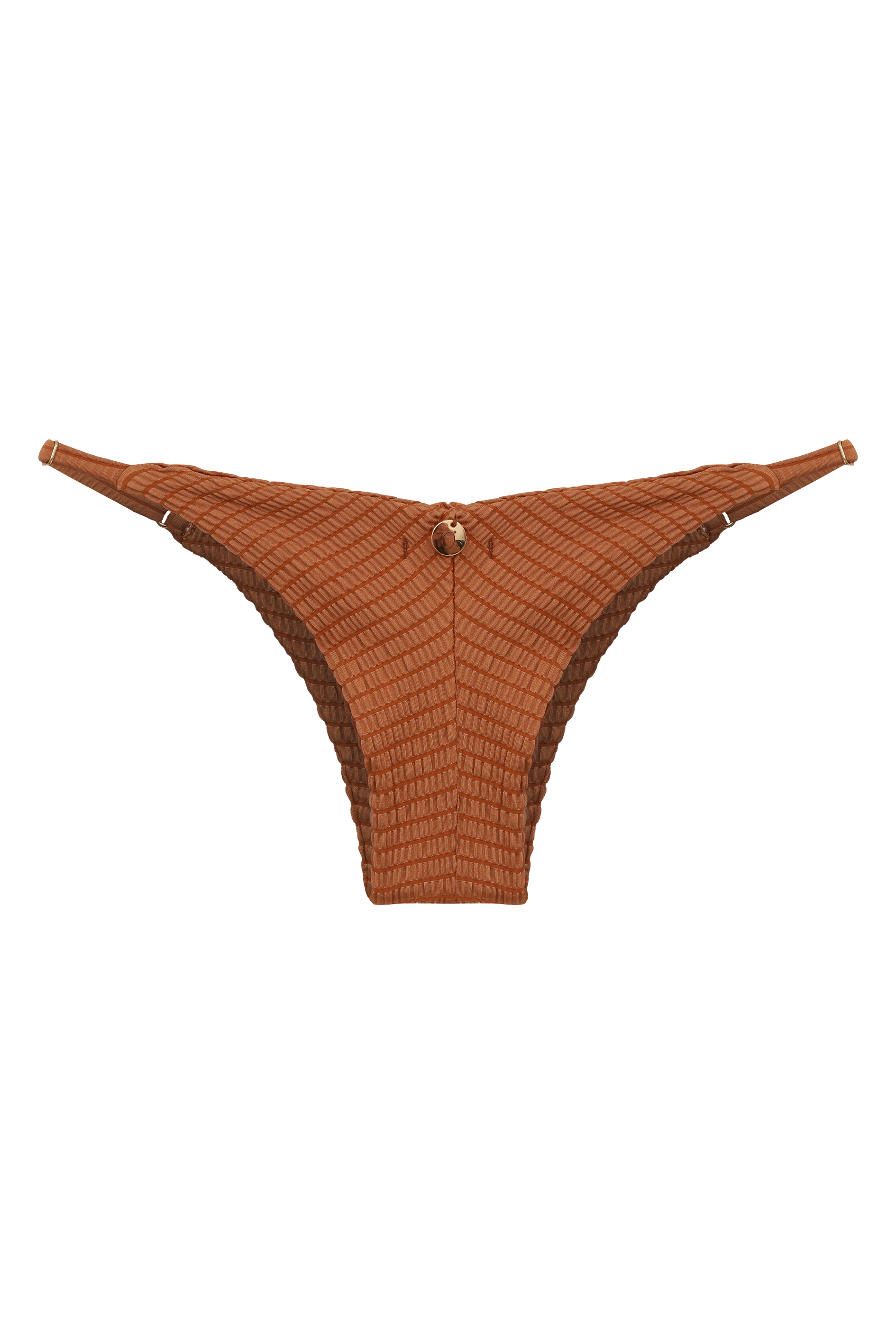 A calcinha possui uma modelagem versátil que valoriza o corpo e pode ser usada como cintura baixa ou mais asa delta, com as laterais ajustáveis para maior conforto.